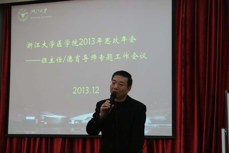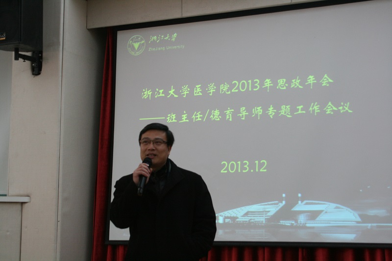 会议最后,陈智常务副院长作总结发言,明确了在深入学习贯彻党的十八届三中全会精神,全面实施浙江大学“六高战略”的过程中,医学院对培养具有国际视野的卓越医学人才的高度重视。就学生培养过程中如何处理专业教师及思政教师之间的关系,如何激励思政教师的积极性,提升学院学生思政管理水平等作出了重要指示。对学校领导的关心支持,兄弟学院的指导协助,以及班主任、德育导师等在教学管理工作中的辛勤付出表达了深深的谢意。