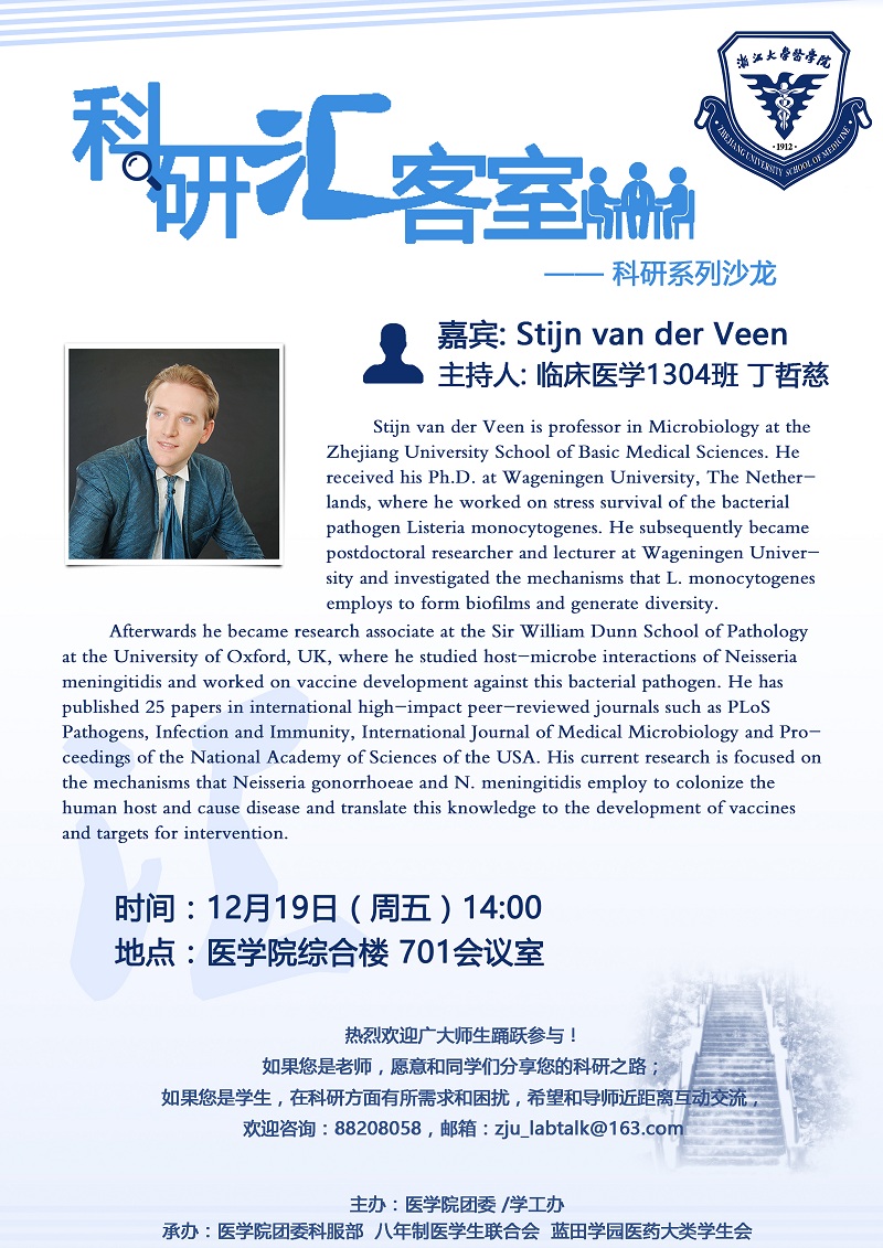 关于举办医学院“科研汇客室”第二场沙龙---全职引进荷兰籍教授Stijn van der Veen互动交流会的通知