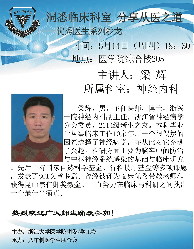 “洞悉临床科室 分享从医之道”优秀医生系列沙龙第十一期--神经内科梁辉老师