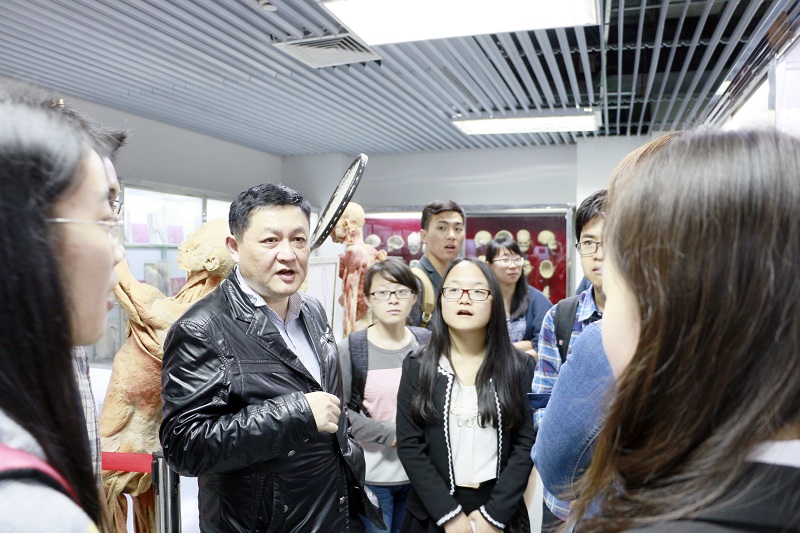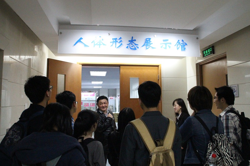 结束了院史馆的参观我们走出老红楼,来到了毗邻而立的新教,在新教的负一楼我们有幸参观了人体形态学标本展示,带领我们的是一位和蔼的老师,他说交大的标本是文革期间有幸被保护下来,历史悠久。同时,老师也自谦表示相比我们浙江大学医学院的人体博物馆,交大的规模还算的比较小的。但是,我们在参观过程中发现,交大的标本相对我们人体博物馆而言,其教学效果更好,因为不同于浙医标本上直接分点标号,他们在图片上做了细致的标注,不会导致模糊、脱落等情况,值得我们医学院学习。