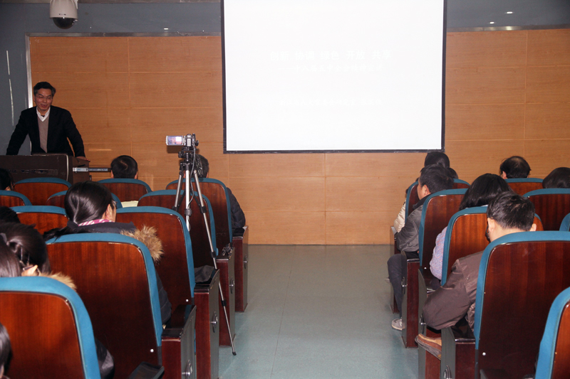 12月18日下午,医学院学习贯彻十八届五中全会精神报告会在医学院综合楼205会议室举行,学院特别邀请了浙江省人大常委会机关党组成员、研究室副主任张国强同志作为主讲嘉宾为学院党委中心组成员、全体管理干部、各支部书记、入党积极分子进行十八届五中全会精神解读。学校党委组织部副部长王志强、党委宣传部副部长李金林、药学院党委书记娄小娥及药学院部分管理干部也出席了报告会。报告会由学院党委副书记陈国忠主持。
