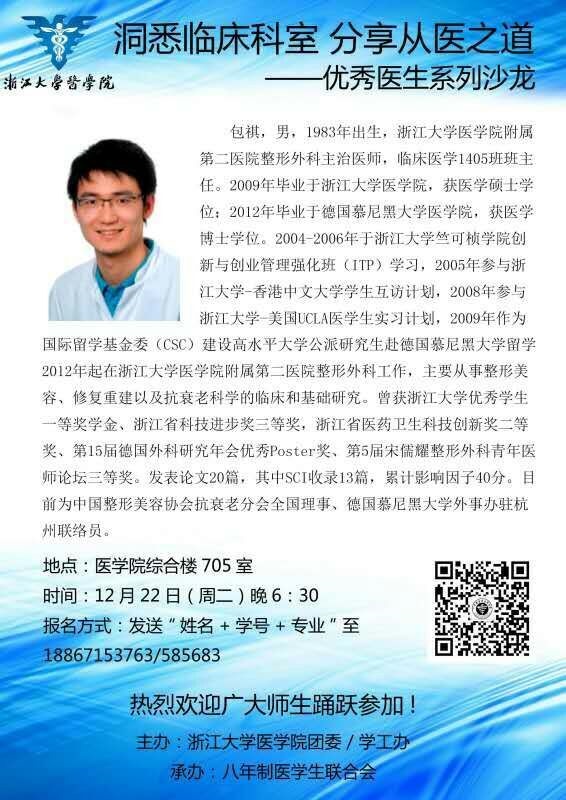 “洞悉临床科室 分享从医之道”优秀医生系列沙龙第十五期--整形外科包祺老师