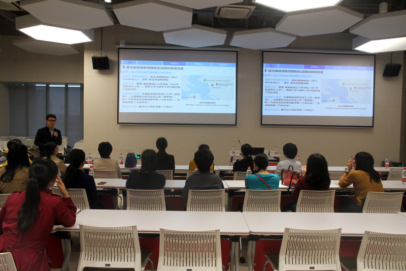 在国际校区综合办公室副主任沈华荣、书院学业导师吴行的带领下,学习团参观了校区书院、学生宿舍、学生中心和教学楼等。在展现了海宁校区国际化校园建设的同时,沈华荣还介绍了国际校区的组织架构和运行机制、合作办学的特点和进展、人才引进及管理队伍建设等情况。